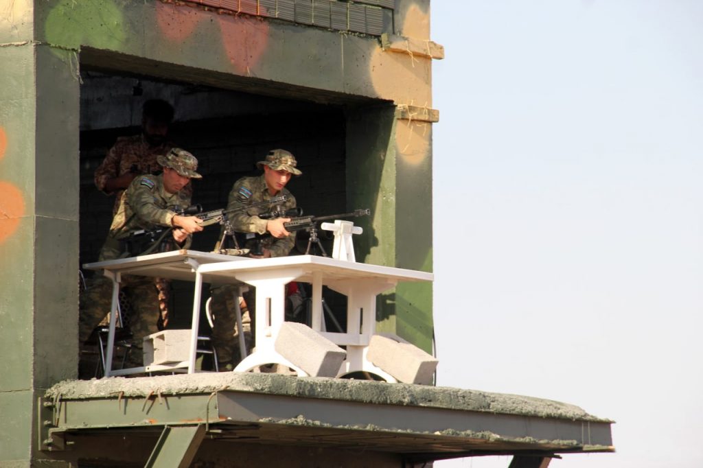 İran İslam Respublikasının Yəzd şəhərində keçirilən müsabiqədə növbəti çalışma zamanı hərbi qulluqçularımız 200-300 metr məsafədə yerləşən üç hədəfi məhv edərək qarşıya qoyulan tapşırıqların öhdəsindən bacarıqla gəliblər.