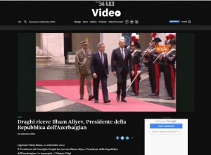 Prezident İlham Əliyevin sentyabrın 1-də İtaliya Respublikasının Prezidenti Sercio Mattarella və Baş nazir Mario Draqi ilə görüşlərinə dair İtaliyanın “RAI” televiziya kanalında gün ərzində reportajlar yayımlanıb. Reportajlarda bu il iki ölkə arasında diplomatik münasibətlərin qurulmasının 30 illiyinin qeyd edildiyi, görüşlərdə çoxşaxəli strateji tərəfdaşlıq səviyyəsinə yüksələn ikitərəfli münasibətlərin inkişafından məmnunluq ifadə olunduğu bildirilib.