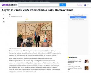 İtaliyanın nüfuzlu qəzetləri və xəbər agentlikləri Prezident İlham Əliyevin sentyabrın 2-də Çernobbio şəhərində “The European House – Ambrosetti” beyin mərkəzinin təşkil etdiyi “Dünya, Avropa və İtaliyaya baxış” və “Rəqabətli strategiyalar üçün bu günün və sabahın ssenarisi” mövzusunda 48-ci Beynəlxalq Çernobbio Forumunda əsas qonaq qismində iştirakına və beynəlxalq tədbirin plenar iclasında “Enerji təhlükəsizliyinin təmin olunmasında Azərbaycanın rolu” mövzusunda çıxışı zamanı səsləndirdiyi fikirlərə geniş yer ayırıb. “Adnkronos”, “Notize Yahoo”, “La Ragione”, “Finance Yahoo”, “MSN”, “il Sole 24 Ore”, “Finanza 24h”, “Ultime Notizie”, “Flamina&dintorni” kimi xəbər portallarında dərc olunan yazılarda Prezident İlham Əliyevin İtaliya ilə Azərbaycanın olduqca fəal siyasi dialoq qurduğunu, iqtisadi, enerji və təhsil sahəsində əlaqələrin inkişafını vurğuladığı bildirilib. Bir il yarım öncə istifadəyə verilən Trans-Adriatik (TAP) boru kəməri ilə Avropaya 13,5 milyard kubmetr təbii qaz nəql edildiyi, bu həcmin 11,7 milyard kubmetri İtaliyanın payına düşdüyü və cari ildə İtaliya bazarına 10 milyard kubmetr qaz nəqlinin planlaşdırıldığı qeyd olunub.