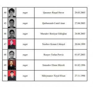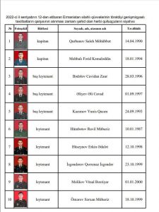 SULH.İNFO.az Azərbaycan Müdafiə Nazirliyinə istinadən siyahını təqdim edir: