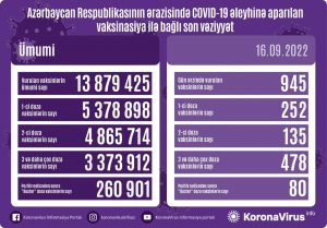 Qeyd edək ki, ölkədə indiyədək vurulan vaksinlərin ümumi sayı 13 879 425 təşkil edir.