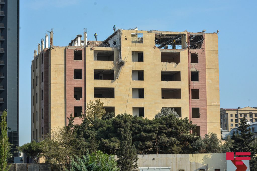 Bakı şəhəri, Xətai rayonunda Yusif Səfərov və Afiyəddin Cəlilov küçələrinin kəsişməsində yerləşən çoxmərtəbəli bina sökülür.