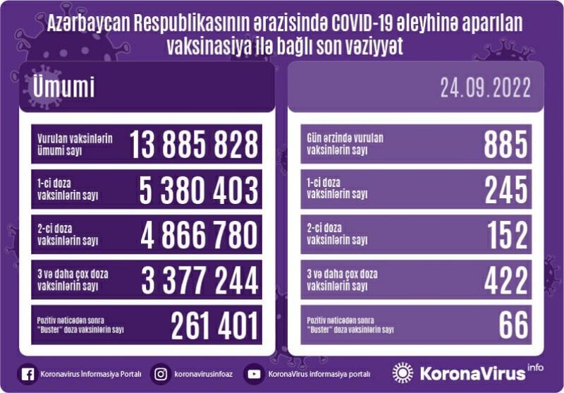 Qeyd edək ki, ölkədə indiyədək vurulan vaksinlərin ümumi sayı 13 885 828 təşkil edir.