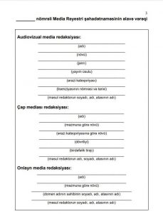 Media Reyestrinə daxil edilmiş media subyektinin redaksiyası mövcud olduqda, Media Reyestri şəhadətnaməsinə “Media Reyestri şəhadətnaməsinin əlavə vərəqi” əlavə edilir.