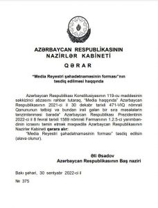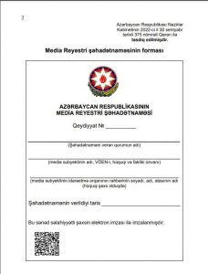 Media Reyestri şəhadətnaməsinin forması təsdiq edilib.