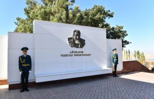 Dövlət başçısı görkəmli qırğız yazıçısı Çingiz Aytmatovun məzarını da ziyarət edib və üzərinə gül dəstəsi qoyub.