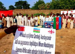 Bildirilib ki, quyunun açılış mərasimində Azərbaycan, Türkiyə və Gürcüstan bayraqları, “Qarabağ Azərbaycandır!”, “Yaşasın Gürcüstanda yaşayan azərbaycanlı qardaşlarımız!”, “Bütün dünyada yaşayan Azərbaycan türk xalqı var olsun!”, “Qarabağ Azərbaycandır!” su quyusunun təşkilatçısı Minurə Mustafayeva xanıma Afrika xalqı adından təşəkkür edirik!” şüarlarının, Şuşanın, “Xarıbülbül” fotolarının əks olunduğu plakatlar nümayiş etdirilib.