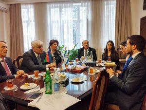 Diplomat tələbələrə mühazirə oxumamışdan əvvəl ali məktəbin rektoru, akademik Kamal Abdulla ilə “Səfir saatı” layihəsi çərçivəsində bir araya gəlib.