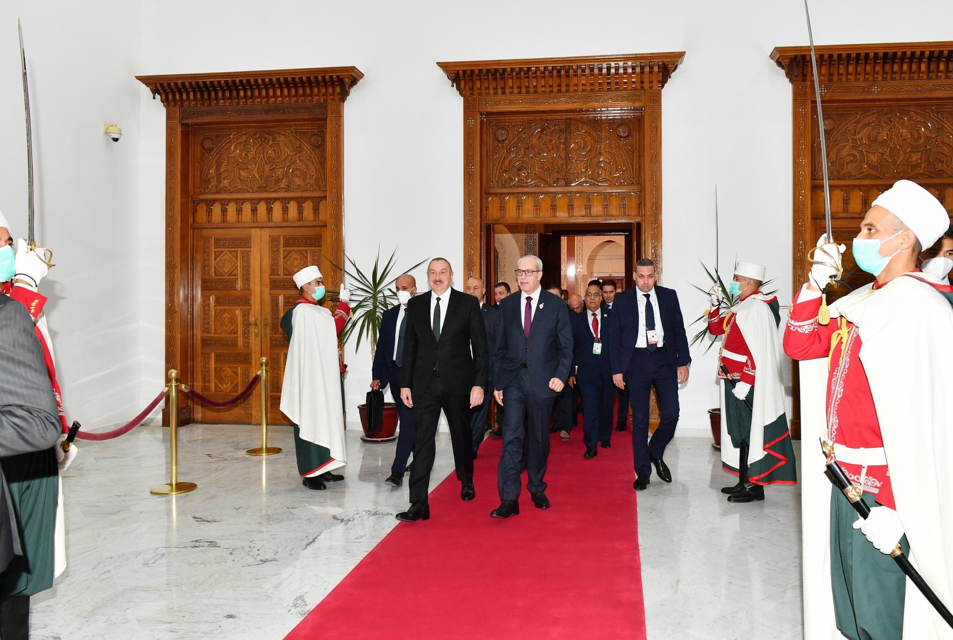 Əlcəzair şəhərinin Huari Bumedyen Beynəlxalq Aeroportunda dövlət başçısının şərəfinə fəxri qarovul dəstəsi düzülmüşdü.