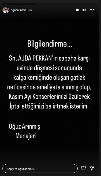 Bu haqda ifaçının meneceri Oğuz Arınmış məlumat yayıb. O, instaqram hesabında Ajdanın mənzilində yıxılaraq ayağını sındırdığını bildirib.